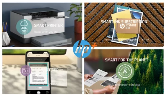 - HP+ is powered by a new Smart App cloud ecosystem – offering enhanced security, productivity and sustainability, making it always ready to print from virtually anywhere at any time5